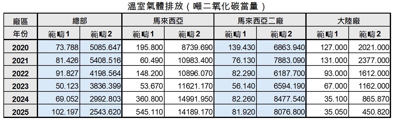 馬來西亞廠 溫室氣體排放(噸二氧化碳當量)